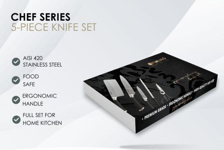 Fukuro Chef Series Butcher Knife 7’’ is designed for cutting through meat and bone. Crafted from premium stainless steel, it provides strength and precision for heavy-duty tasks.