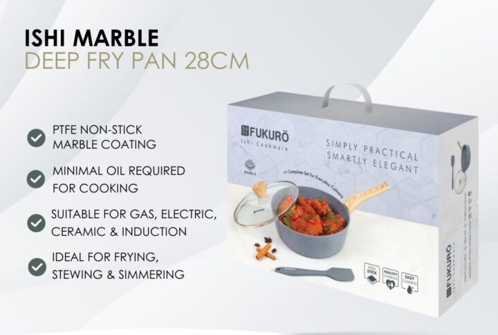 - Material: Aluminium with PTFE Non stick marble coating