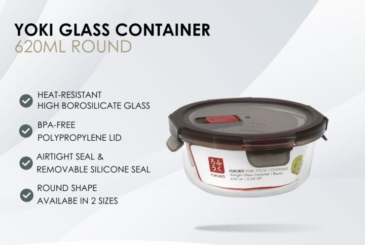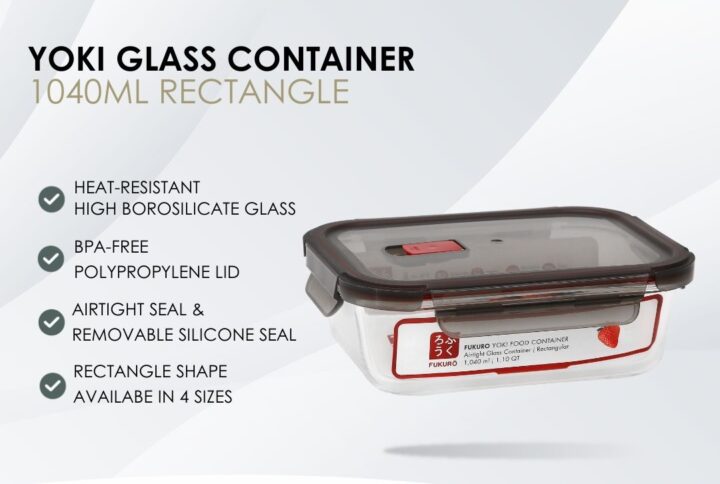 • Material: Glass container: Premium borosilicate glass / Lid: BPA-free polypropylene