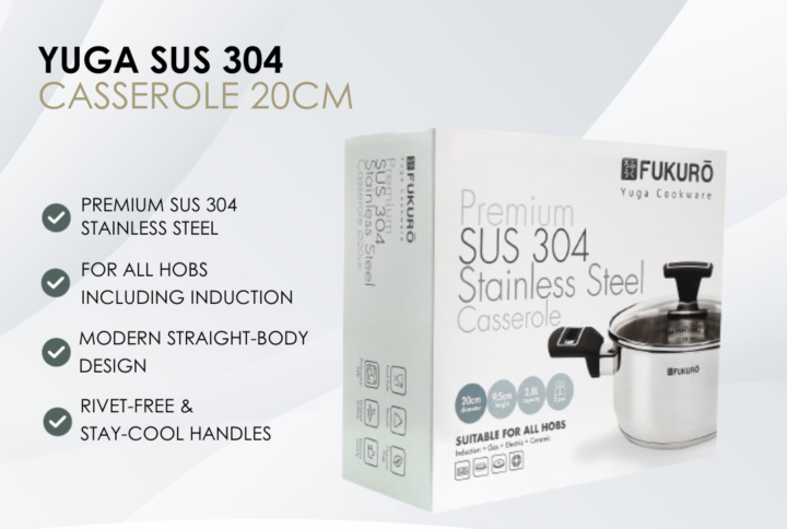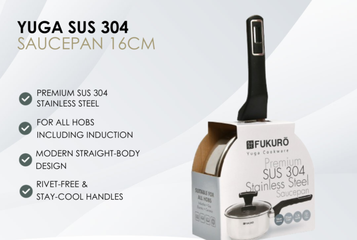 Fukuro Yuga Cookware series, our stylish and durable cookware crafted from food-safe SUS 304 stainless steel with a sleek mirror-polished finish. Its rivet-free design and laser-etched measuring marks make cooking and cleaning a breeze. The tempered glass lid with a stay-cool bakelite handle ensures safe and comfortable use. Perfect for all stove hobs, including induction. The versatile Fukuro Yuga Cookware series is a must-have addition to any kitchen!